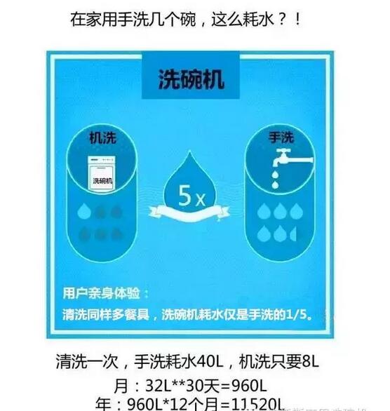 使用自動洗碗機至少可比手洗節省3/4的水。