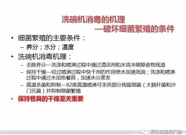 首先,洗碗機(jī)對(duì)于餐具的清潔程度是手洗所無(wú)法實(shí)現(xiàn)的。餐具衛(wèi)生的一個(gè)重要環(huán)節(jié)即對(duì)餐具表面細(xì)菌的控制,細(xì)菌繁殖的條件一般包括營(yíng)養(yǎng)、溫度、濕度、酸度、時(shí)間、氧氣等。