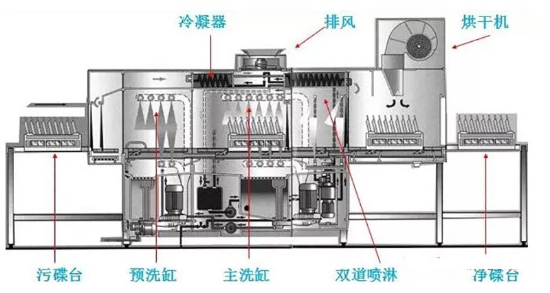 它通過高溫高壓的水流對餐具進行全方位沖刷,結合洗滌劑對油污和殘渣的分解作用,以及熱水對食物殘渣的軟化作用,迅速去除污漬,達到清潔和去污的雙重效果。