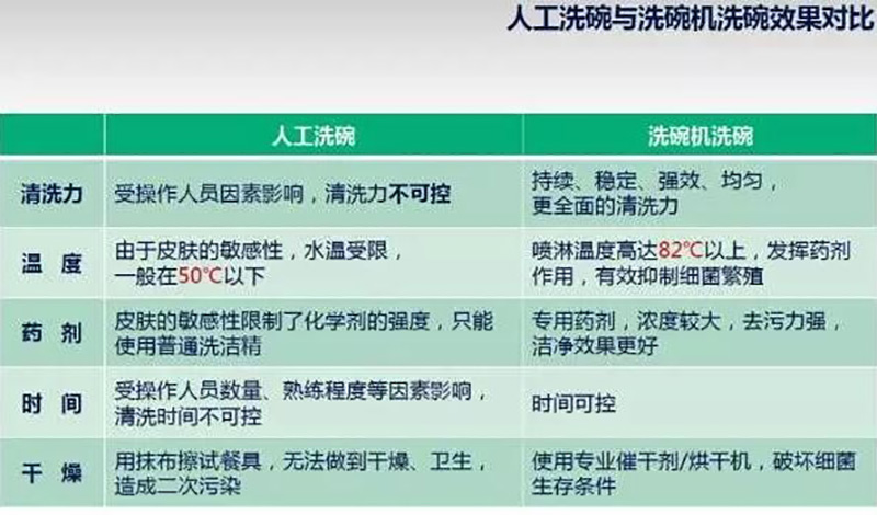 綜上所述,洗碗機不僅能更高效地按時完成洗滌任務,而且更干凈衛生,既節省了人力成本,又更加安全可靠。它能迅速清除餐具上的油脂,且無任何殘留,確保餐具使用安全,避免細菌交叉感染,更符合國家餐飲行業的衛生安全標準。