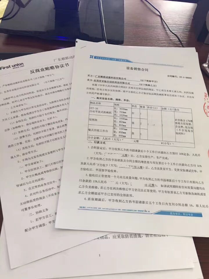 廣東順聯動漫使用亞鈦食堂洗碗機GYT-60已經滿一年了,前陣子特意回訪廣東順聯動漫食堂負責人黃總,黃總對亞鈦洗碗機非常滿意,特別對洗碗機的清洗效果和速度給予高度評價,后來希望對洗碗機的改進提了幾點建議,其建議我們也在后進改進中會重點注意,希望洗碗機能越來越好的服務客戶。為此祝廣東順聯動漫生意興隆。